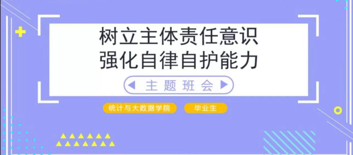 10月24日25日,为引导学生强化主体责任意识,毫不放松、慎终如始做好当前疫情防控工作,统计与大数据学院面向全体学生召开疫情防控主题班会,班会主题为树立主体责任意识,强化自律自护能力,采用线上钉钉会议形式,由各年级辅导员主讲。