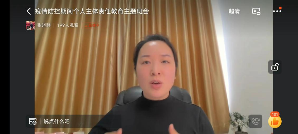 这次主题班会使同学们客观理性地认识了疫情形势,深化了个人是疫情防控工作的第一责任人这一概念,为进一步引导学生自觉遵守和主动接纳学校防疫管理各项措施打下坚实基础。