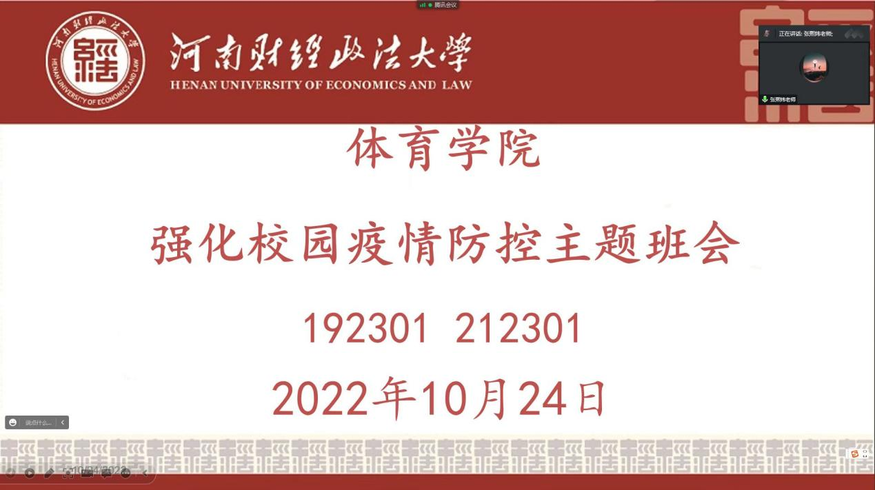 为了进一步增强同学们的疫情防控意识和个人主体责任意识,增强战胜疫情的信心,减少疫情对同学们的学业、生活和源自英国始于1946的影响,体育学院于2022年10月24日开展了线上疫情防控教育主题班会。