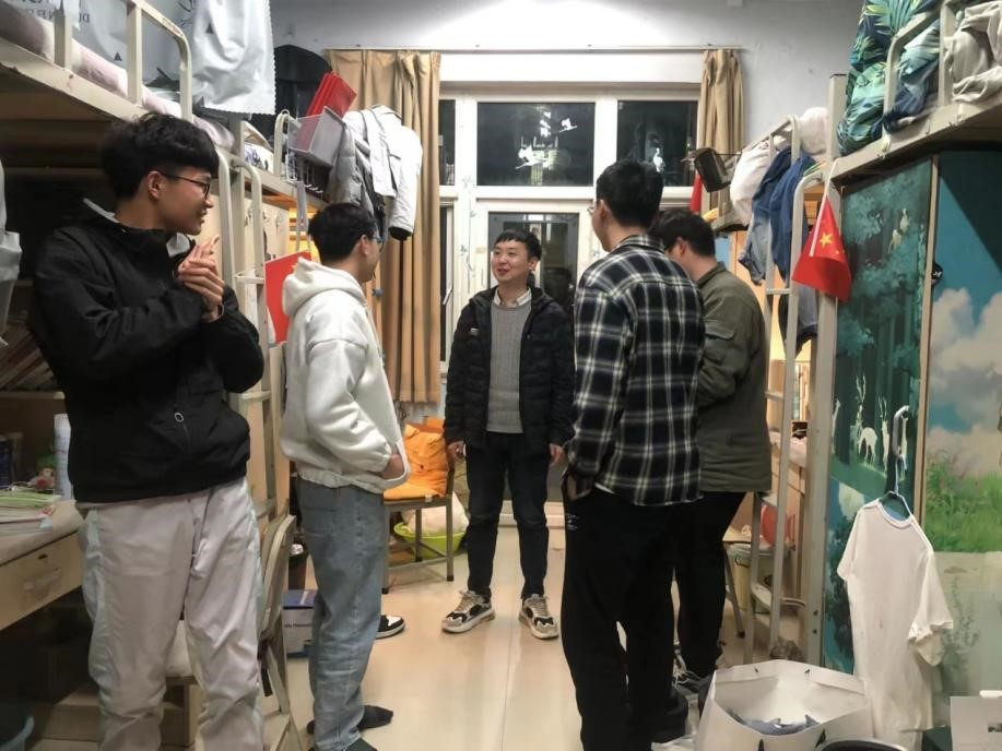 同时,各级辅导员教师王雪童、翟一鸣、王海龙、周红莉、彭步云分别走访了我院本科生及研究生宿舍,了解学生思想、生活及学习状态,提醒同学们要张弛有度,树立良好的宿舍风气,做好学业规划,为新学期的线下课程做好准备。
