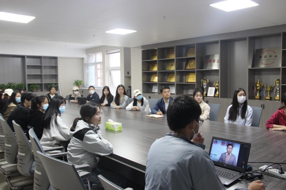 4月1日上午,外语学院党委副书记乔现伟和学生代表一起,在教学科研楼745会议室观看直播,学院辅导员和其他同学,通过网络认真开展线上学习。思政课结束后,同学们交流、畅谈了自己的感悟,纷纷表示坚定理想信念,勇担新时代青年使命,深入体悟践行党的二十大精神。
