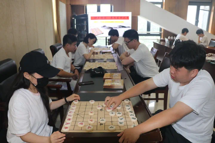 乒乓球比赛现场热火朝天,凝神聚力,球拍在手,挥斥方遒。羽毛球赛场上,一次次拼尽全力的扣杀、一次次奋不顾身的扑救带来了一场精彩纷呈的视觉盛宴。象棋比赛,正襟危坐,沉着应对;或低头深思,或果断出击,出招无语、落棋有声,尽情展现精湛棋艺。