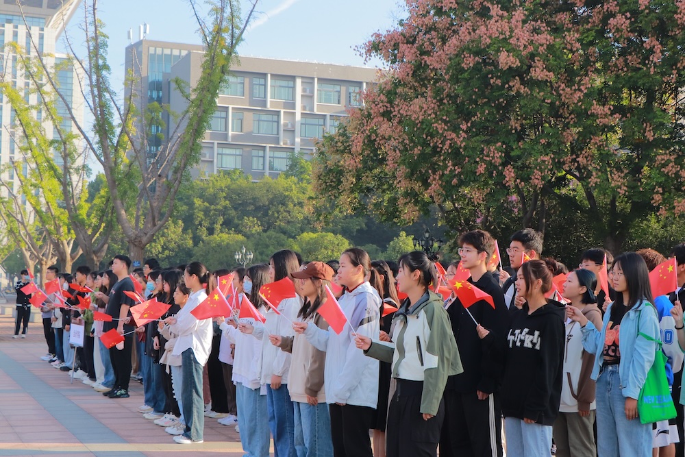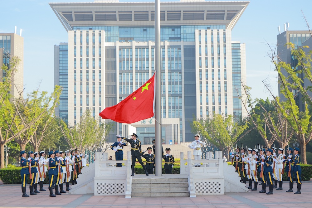 10月1日,在中华人民共和国成立74周年之际,为在广大师生中弘扬爱国主义精神、厚植爱国主义情怀,伟德bv1946官网在郑东校区明德广场隆重举行升旗仪式,师生代表参加观礼。